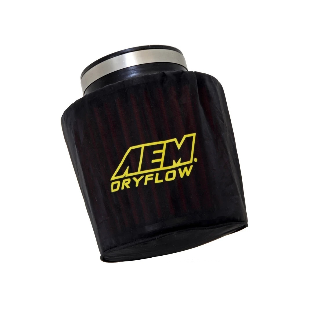 Air Filter Wrap – DryFlow – Reusable – 6 in OD Base – 5-1/4 in OD Top – 5 in Tall – Silicone Treated – Polyester – Black – Each