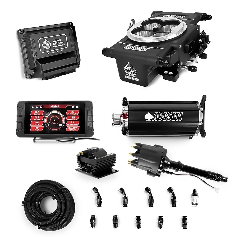 Fuel Injection – Killshot EFI Master – Throttle Body – Square Bore – Computer / Distributor / Fittings / Ignition Coil / Wiring Harness – Aluminum – Black Ceramic Coating – Universal – Kit