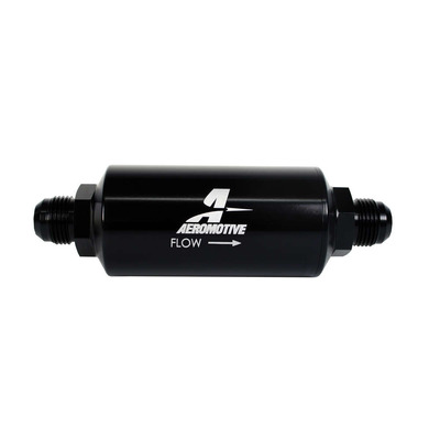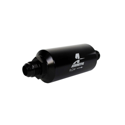 Fuel Filter – In-Line – 10 Micron – Cellulose Element – 10 AN Male Inlet – 10 AN Male Outlet – Aluminum – Black Anodized – Each