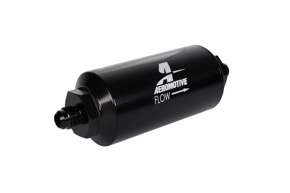 Fuel Filter – In-Line – 100 Micron – Stainless Element – 6 AN Male Inlet – 6 AN Male Outlet – Aluminum – Black Anodized – Each