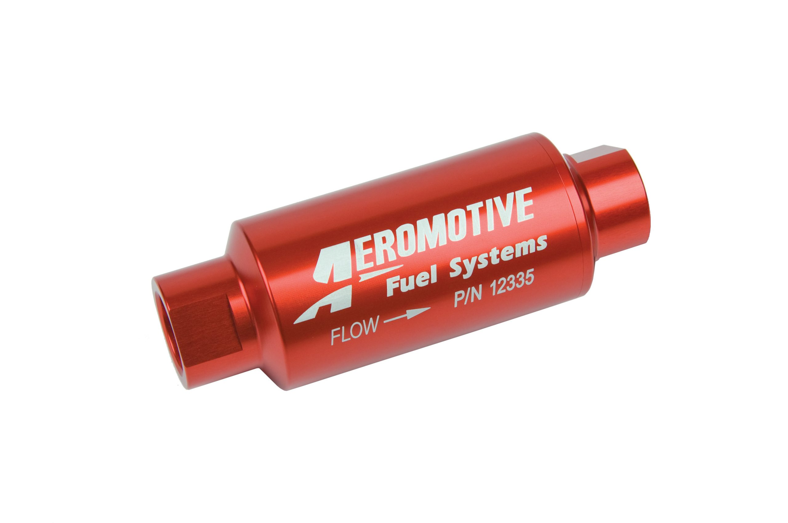 Fuel Filter – In-Line – 40 Micron – Stainless Element – 10 AN Female O-Ring Inlet – 10 AN Female O-Ring Outlet – Aluminum – Red Anodized – Each