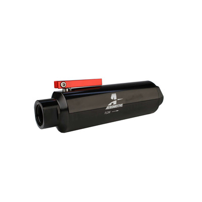 Fuel Filter – In-Line – 100 Micron – Stainless Element – 12 AN Female O-Ring Inlet – 12 AN Female O-Ring Outlet – Shutoff Valve – Aluminum – Black Anodized – Each