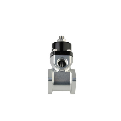 Fuel Pressure Regulator – Stackable Carbureted – 5 to 12 psi – In-Line – 2-Bolt Flange Inlet – Dual 6 AN Female O-Ring Outlets – Black / Clear Anodized – Flange Stackable – E85 / Gas – Each