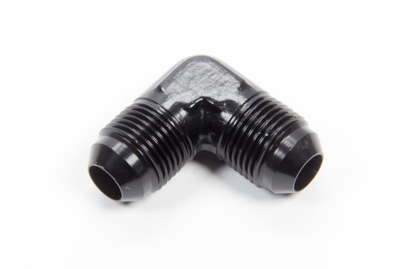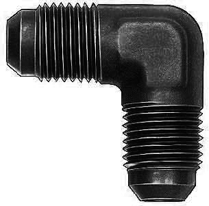 Fitting – Adapter – 90 Degree – 8 AN Male to 8 AN Male – Aluminum – Black Anodized – Each