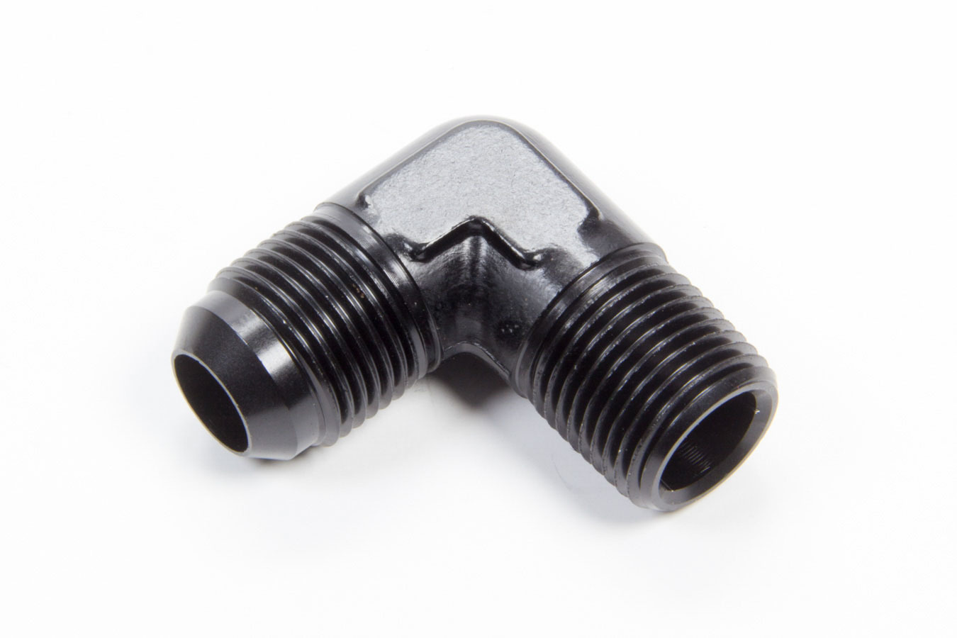 Fitting – Adapter – 90 Degree – 10 AN Male to 1/2 in NPT Male – Aluminum – Black Anodized – Each