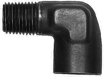 Fitting – Adapter – 90 Degree – 3/8 in NPT Female to 3/8 in NPT Male – Aluminum – Black Anodized – Each