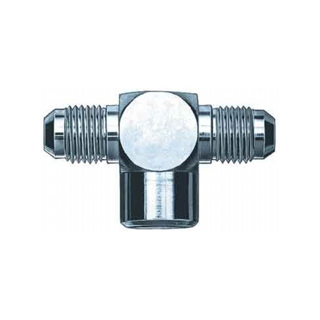 Fitting – Adapter Tee – 1/8 in NPT Female x 4 AN Male x 4 AN Male – Steel – Natural – Each