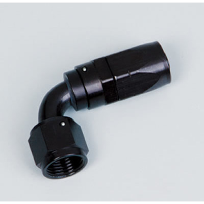 Fitting – Hose End – 90 Degree – 6 AN Hose to 6 AN Female Swivel – Aluminum – Black Anodized – Each