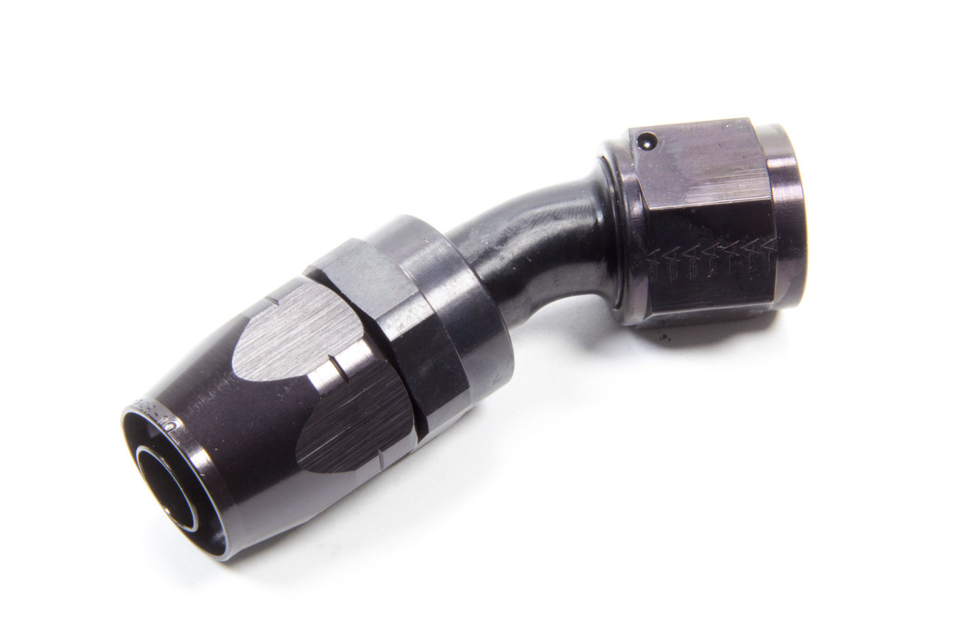 Fitting – Hose End – AQP/Startlite – 30 Degree – 10 AN Hose to 10 AN Female Swivel – Aluminum – Black Anodized – Each