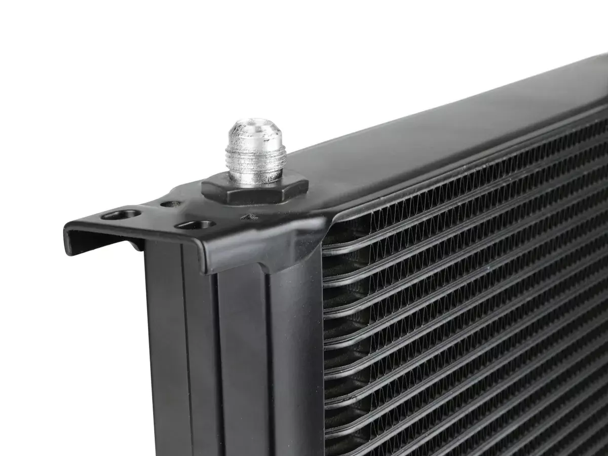 Fluid Cooler – 13 x 8.75 x 2 in – Plate Type – 8 AN Male Inlet / Outlet – Aluminum – Black Paint – Ford EcoBoost V6 / Coyote – Ford Fullsize Truck 2015-20 – Kit
