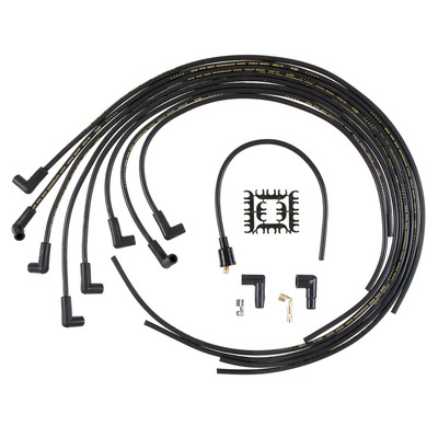 Spark Plug Wire Set – Super Stock – Spiral Core – 8 mm – Black – 90 Degree Plug Boots – HEI Style Terminal – Cut-To-Fit – V8 – Kit