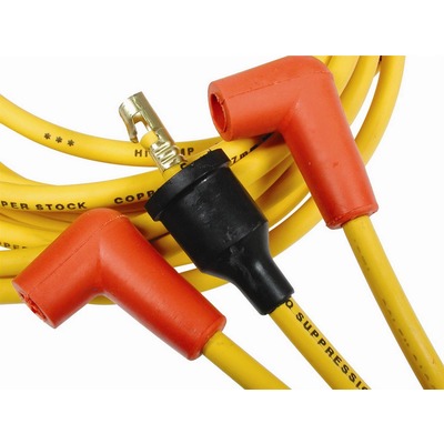 Spark Plug Wire Set – Super Stock – Spiral Core – 8 mm – Yellow – 90 Degree Plug Boots – Socket Style – Cut-To-Fit – V8 – Kit