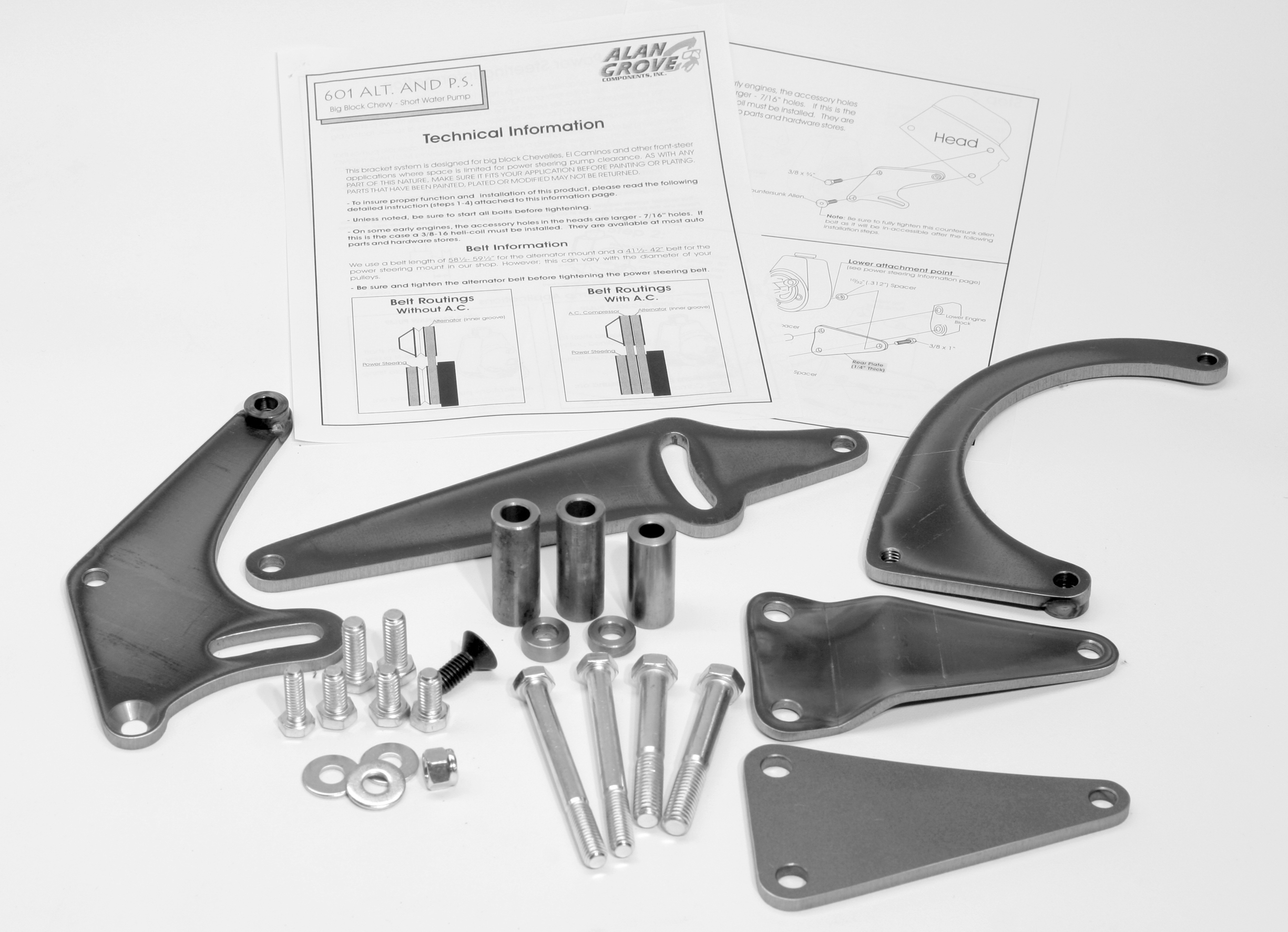 Alternator and Power Steering Bracket – Driver Side Mount – Steel – Natural – GM Alternator – Saginaw Pump – Short Water Pump – Big Block Chevy – Kit