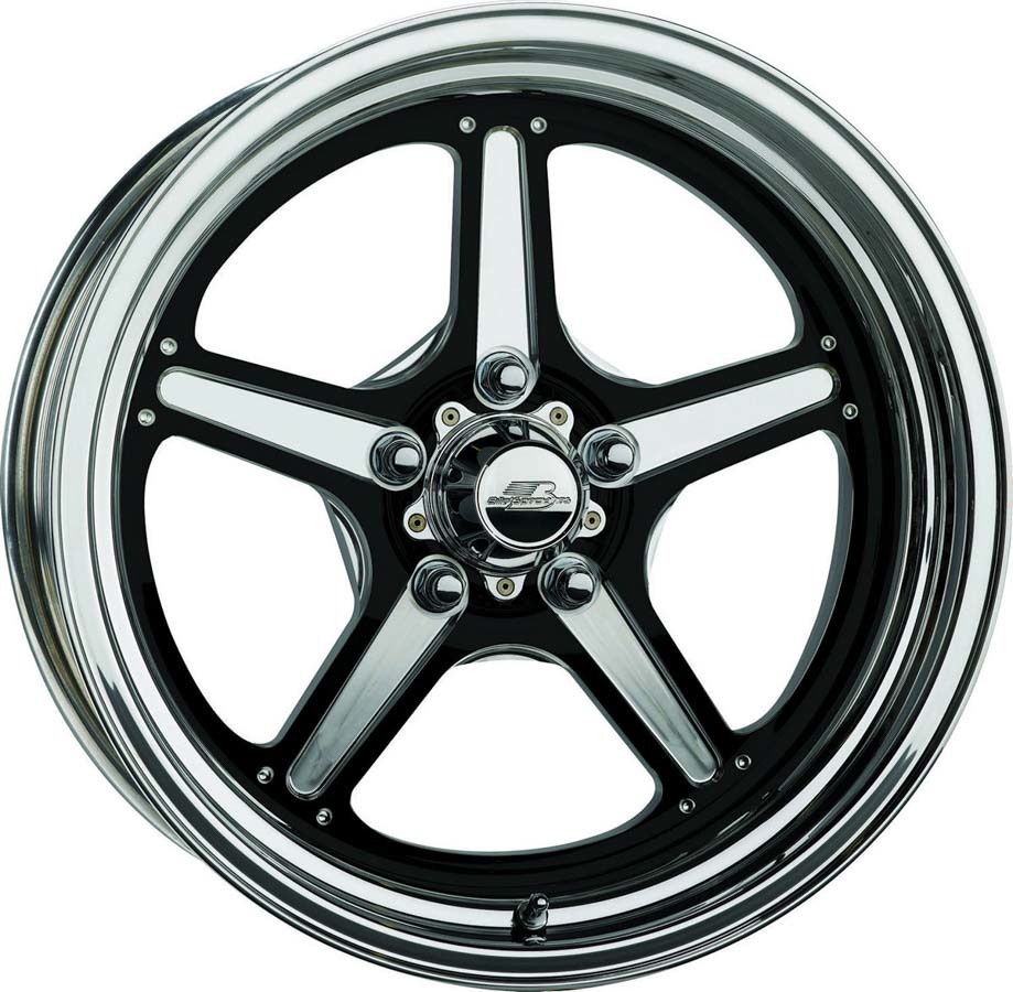 Wheel – Street Lite – 15 x 8 in – 4.500 in Backspace – 5 x 4.50 in Bolt Pattern – Aluminum – Black Anodized / Machined Center – Polished Lip – Each